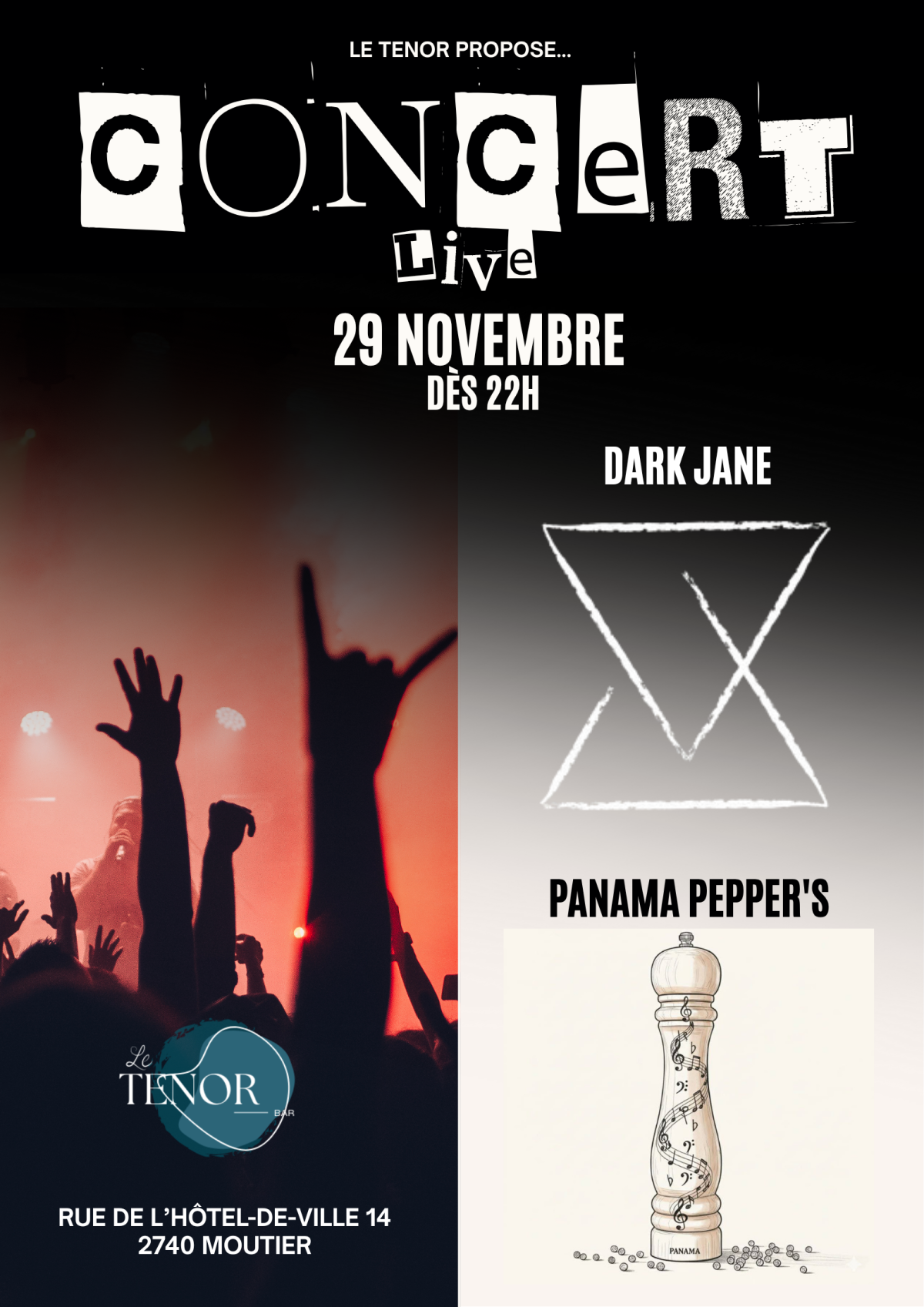 Samedi 29 novembreRejoignez-nous pour le vernissage de Dark Jane et le concert de Panama Pepper’s — on a hâte de vous y voir !