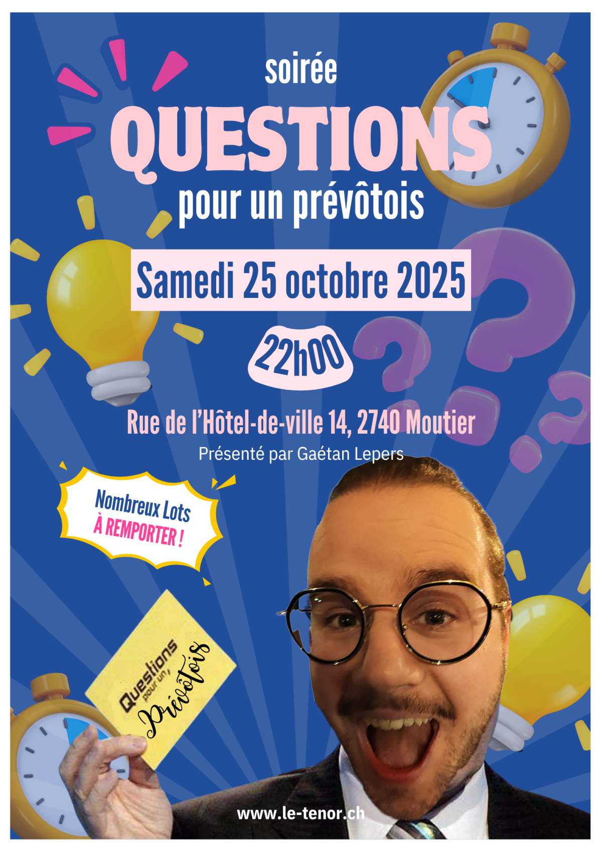 Samedi 25 octobreSous la direction de Gaétan Lepers, rejoignez-nous pour une soirée riche en questions et surprises !